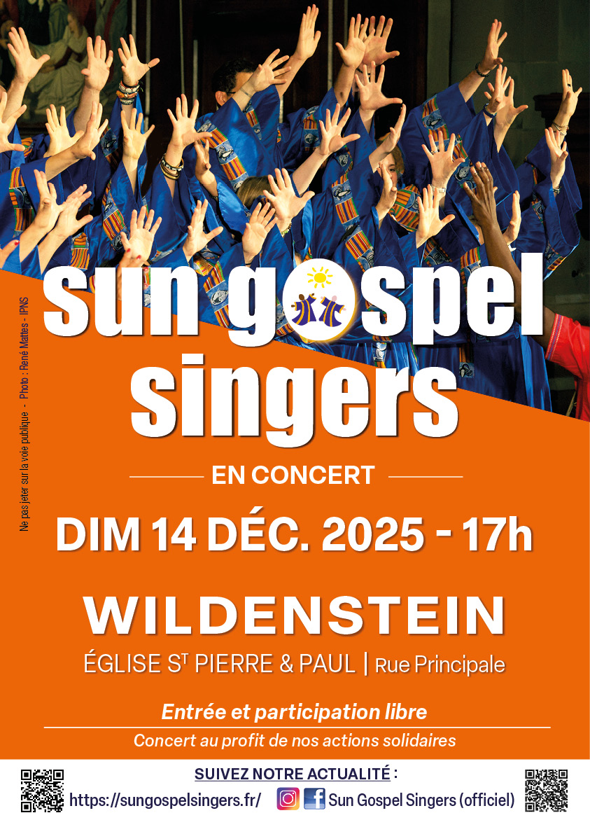 Dimanche le 14 décembre à 17h à l’Eglise Saint-Pierre et Saint-Paul de Wildenstein Entrée libre / Plateau Concert au profit de nos actions solidaires
