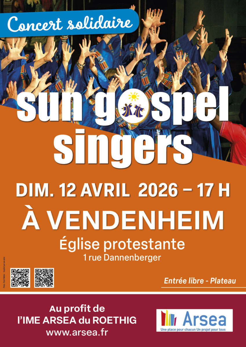 Les Sun Gospel Singers se mobilisent aux côtés de l’IME Arsea du Roethig pour un moment de musique et de solidarité. Les fonds récoltés permettront de soutenir l’accompagnement d’enfants et d’adolescents en situation de handicap vers plus d’autonomie, d’apprentissage et d’inclusion.